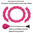 Connected by 24 or 28 detachable sections, our Smart Weighted Fit Hoop is adjustable to all waist sizes from 20 to 52 inches. That means that you can use it forever, regardless of your waist size changes. Every section has an ergonomic bump that provides a pleasant massage to your belly while using it. Material: ABS